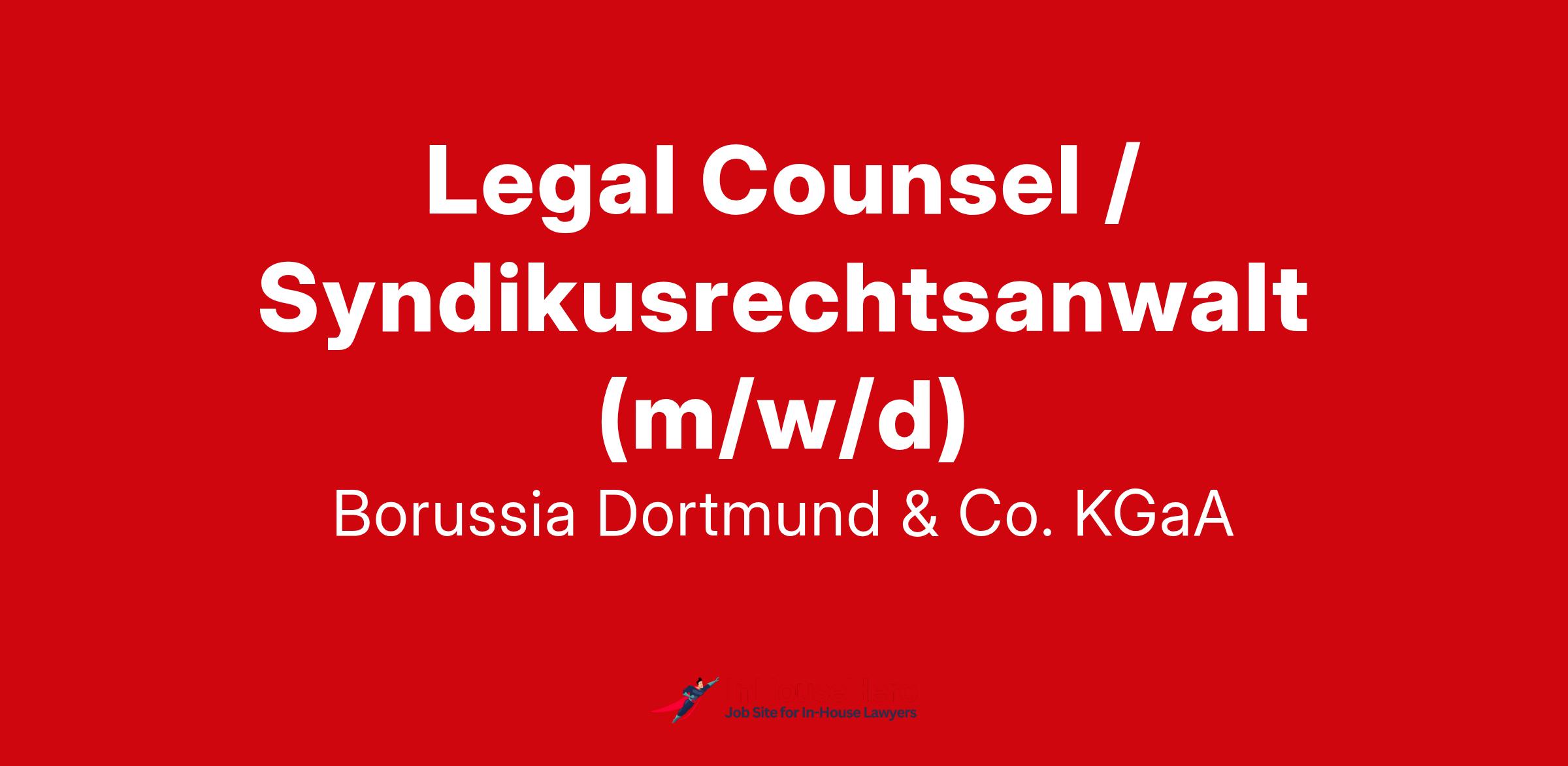 Für die Direktion Recht & Investor Relations der Borussia Dortmund GmbH & Co. KGaA suchen wir zum nächstmöglichen Zeitpunkt einen Legal Counsel bzw. Syndikusrechtsanwalt (m/w/d) im Rahmen einer Vollzeitbeschäftigung (40h/Woche).
